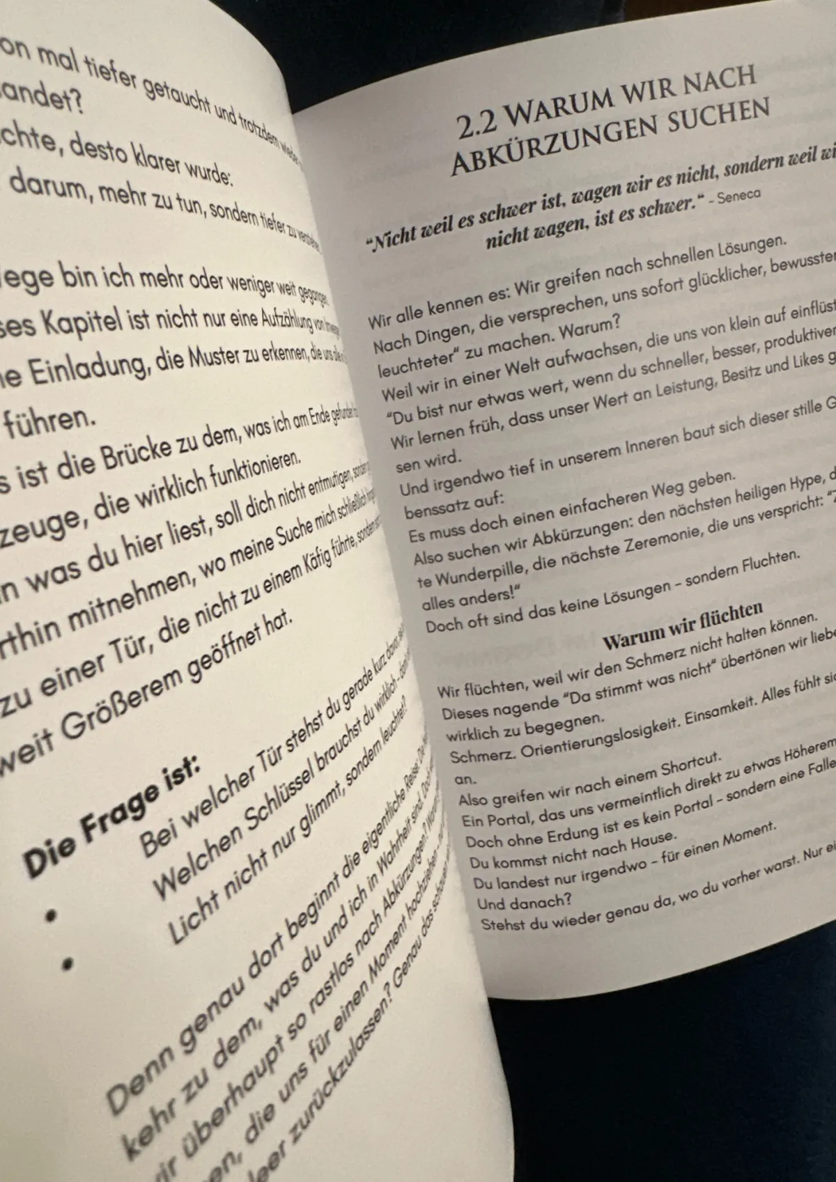 Über 200 Seiten komprimierte Klarheit, Weisheit und gelebte Erfahrung – destilliert wie ein Schlüssel, der Türen öffnet, statt dich weiter suchen zu lassen.